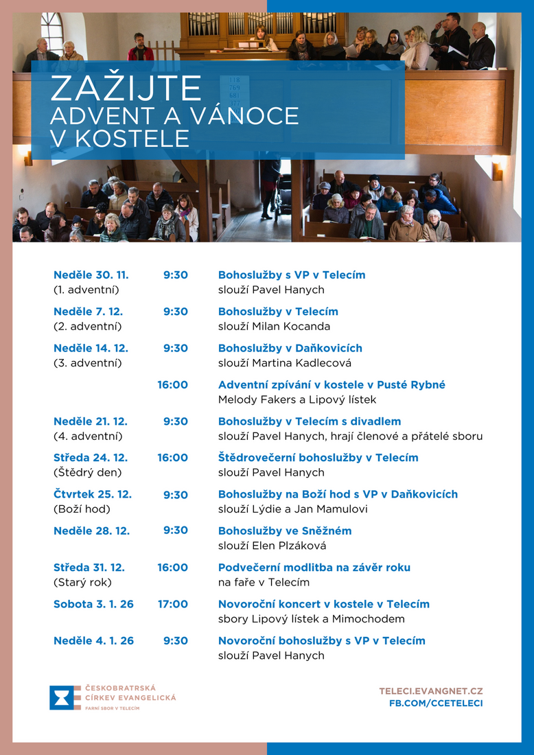 Doma jsme v Telecím a Pusté Rybné, čím dál častěji se ale scházíme i s křesťany z blízkého okolí. Jsme spolu rádi i při různých dalších příležitostech, besedách či kulturních akcích, které pořádáme po celý rok.