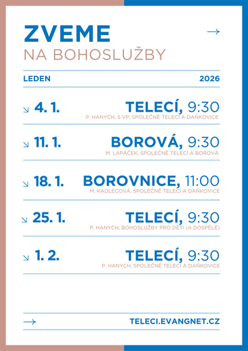 Bohoslužby, setkání, kultura i úřad. Podívejte se, co chystáme právě nyní. Pravidelný program sboru je popsán tady.